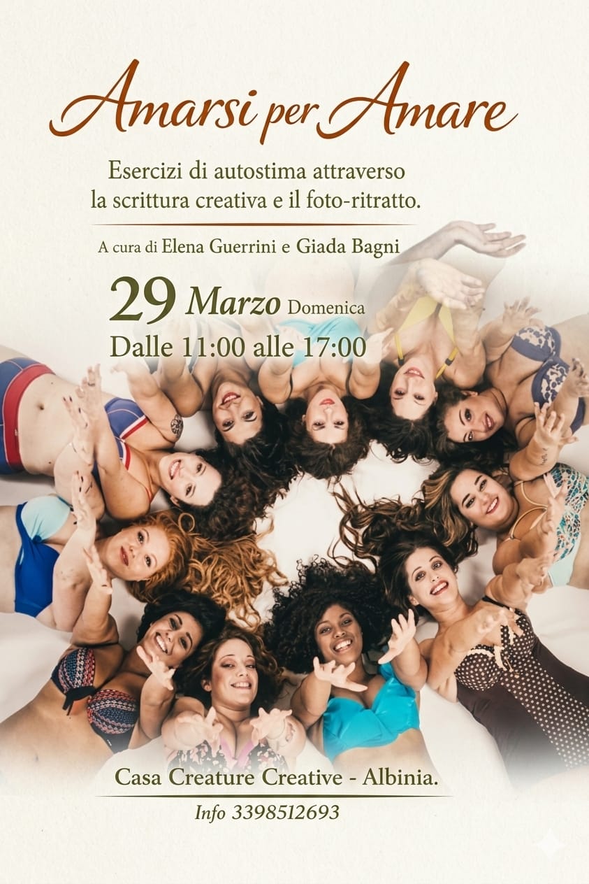 Amarsi per Amare, è un workshop di pratiche per l’autostima tra scrittura poetica evolutiva e fotografia della connessione con il sé, ideato da Elena Guerrini e Giada Bagni
